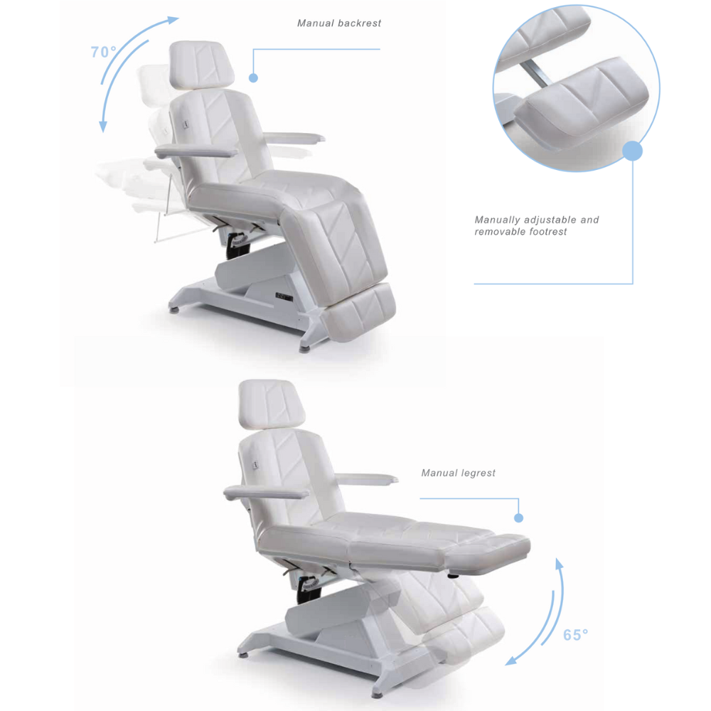 - Fully Electric Operation: Four actuators for precise adjustments of the table height, backrest, leg rest, and trendelenburg, ensuring optimal patient access.